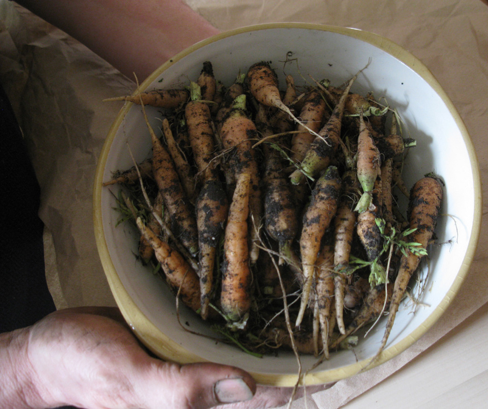 A few dozen baby carrots were pulled as we thinned the crop. Tender and flavourful, our first crop of 2011 was crisp and candy-sweet.